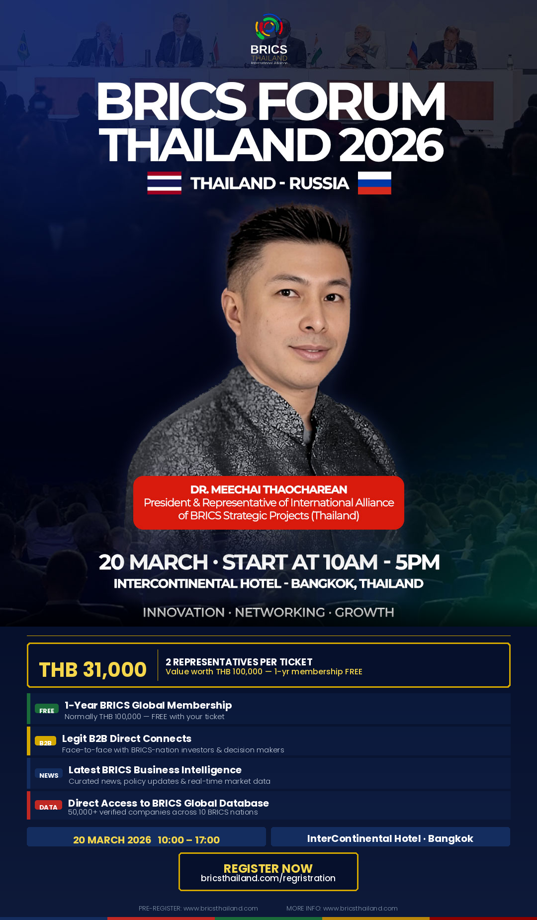 BRICS Forum Thailand 2026 brings together business leaders, policymakers, and investors to explore opportunities for cooperation between Thailand and the BRICS economies.